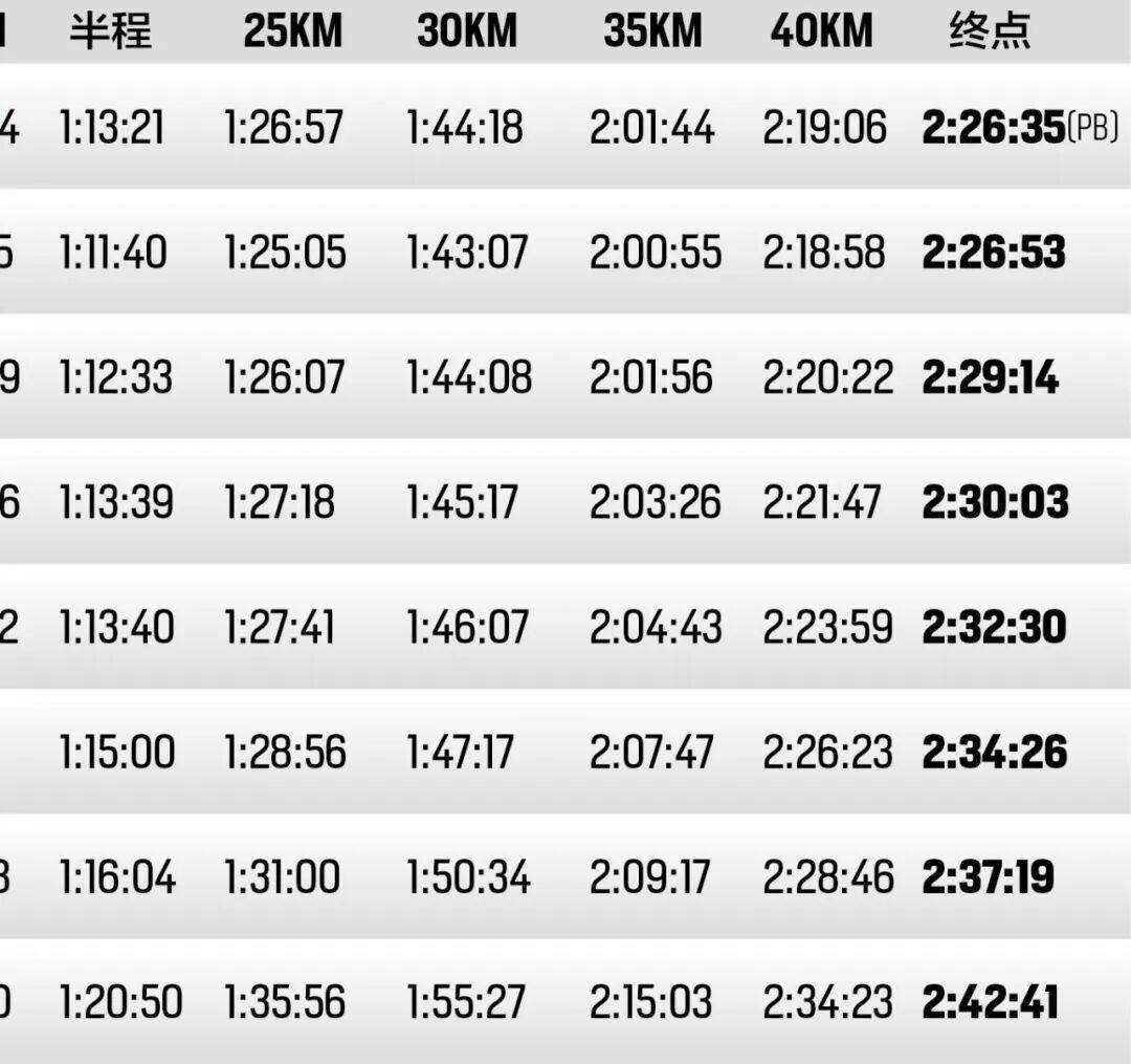 10公里时,桥本龙一在Pacer的带领下继续保持领先状态,用时29分02秒。位于其后的非洲精英团用时29分28秒;丰配友用时29分39秒,位于第三十位。丰配友半程用时实际半程用时1小时02分48秒,排在全场第26位。这个成绩要快于何杰2024年无锡跑出全国纪录的半程用时。不过,丰配友坦言,自己那时并没有想到碰触国家纪录,只是觉得“PB有希望”,因为他觉得“身体非常轻松”。