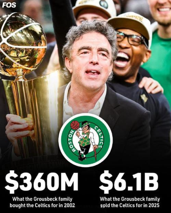同样,凯尔特人现任管理人格鲁斯贝克家族在2002年仅以3.6亿美元接手,如今61亿售出,资产增值近17倍。